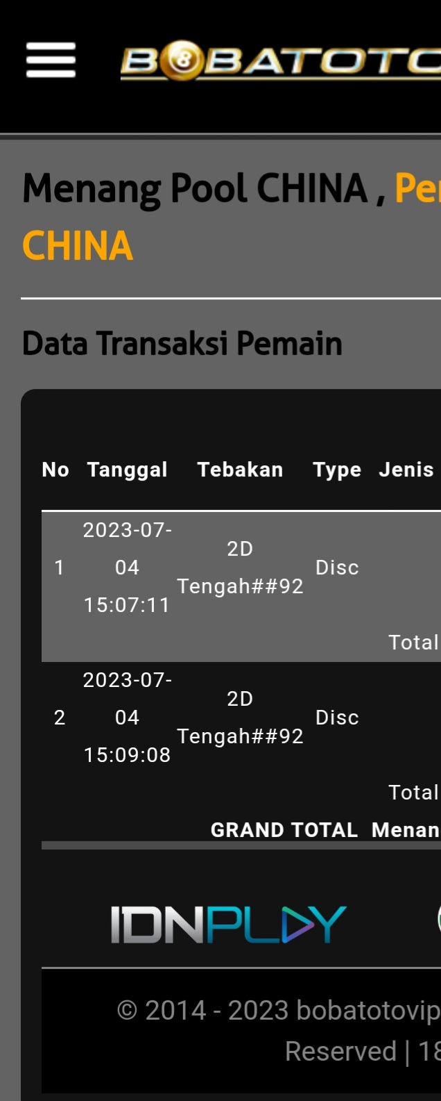 Selamat Bergabung kembali Master Togeller dalam room MASTER CHINAPOOLS.
