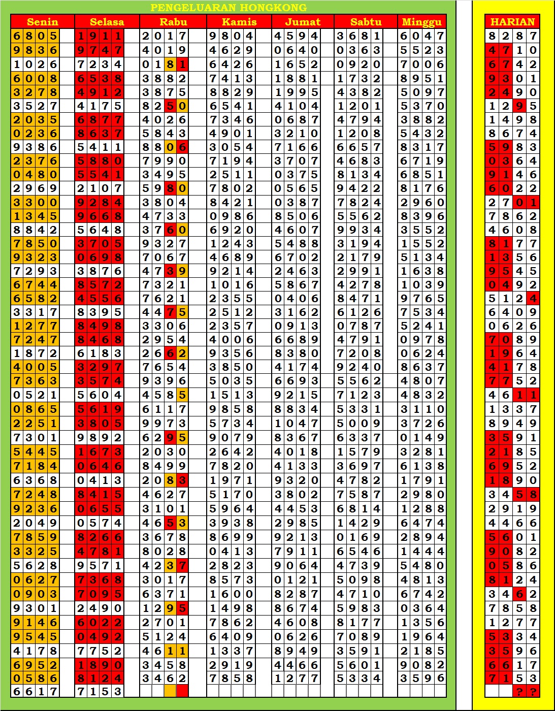| TABEL DATA HKG VERSI 6D TAHUN 2010 HINGGA SEKARANG |