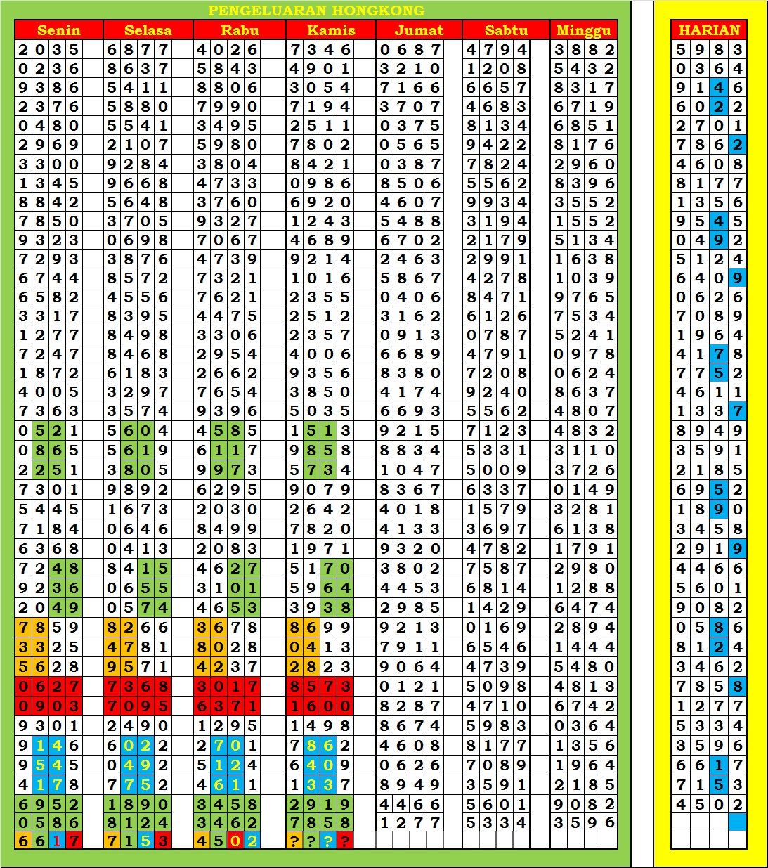 | TABEL DATA HK 6D VERSI HARIAN |