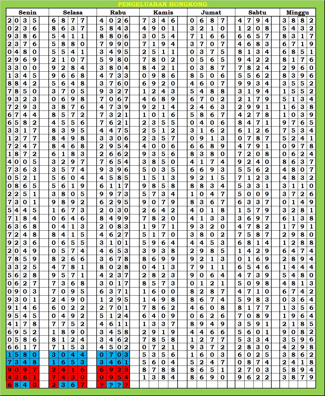 | TABEL DATA HKG VERSI 6D TAHUN 2010 HINGGA SEKARANG |
