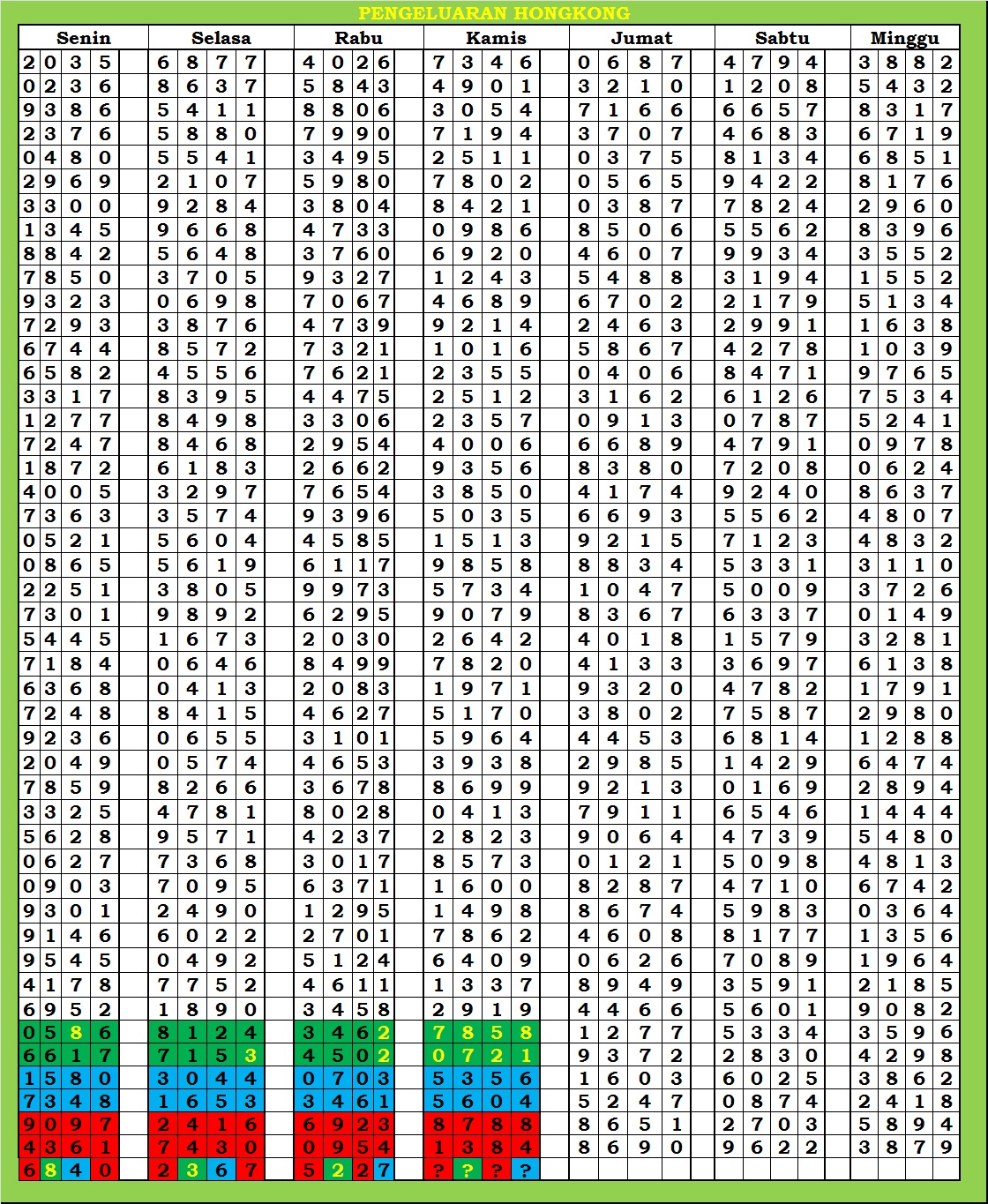 | TABEL DATA HKG VERSI 6D TAHUN 2010 HINGGA SEKARANG |