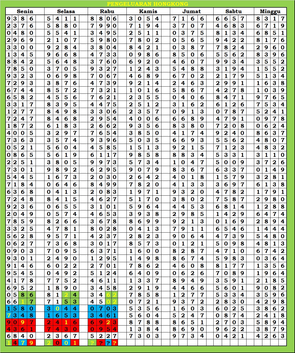 | TABEL DATA HKG VERSI 6D TAHUN 2010 HINGGA SEKARANG |