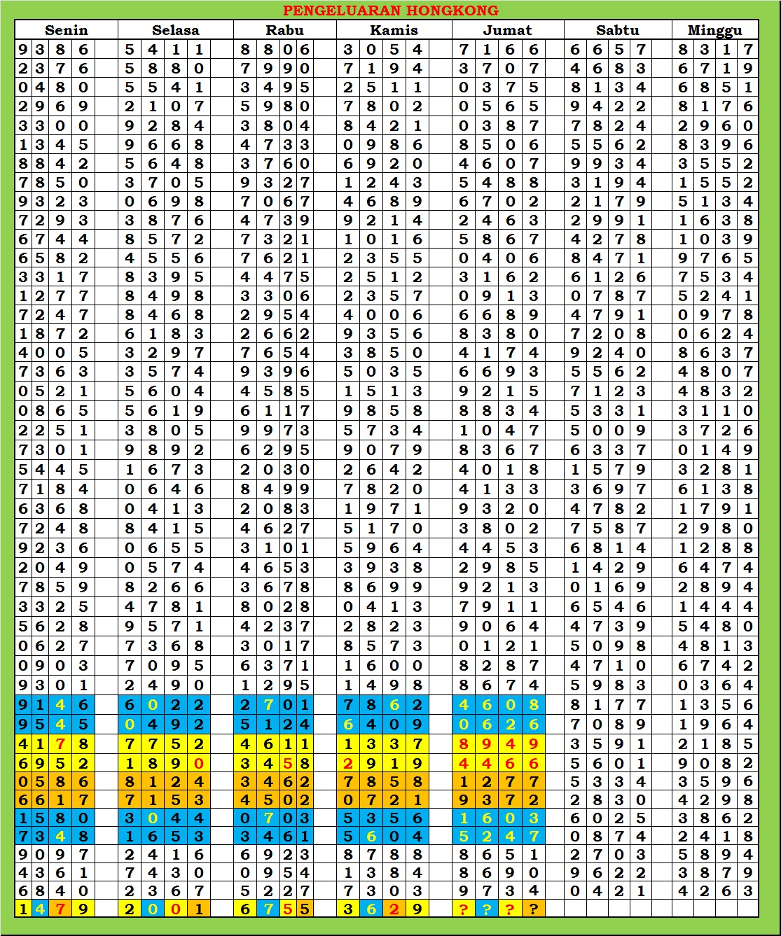 MASTER HONGKONG Minggu, 22-02-2026 Merupakan Prediksi Otomatis yang menggabungkan Metode Kalender Togel Dengan Rumus-rumus kontrol yang sudah terbukti keakuratanya.Gunakan Aplikasi Rekap untuk mendapatkan LN TOP. Harap Maklum Jika kadang meleset MASTER HONGKONG kita. Jadikan ini sebagai perbandingan saja dan tetap UPS