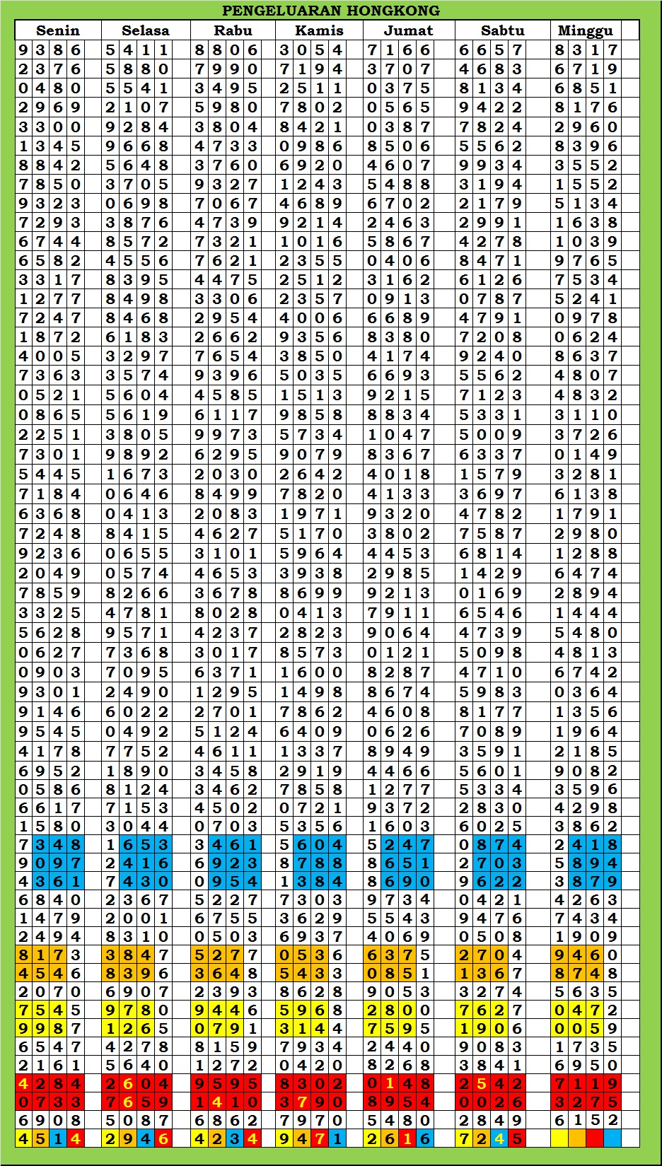 | TABEL DATA HKG VERSI 6D TAHUN 2010 HINGGA SEKARANG |
