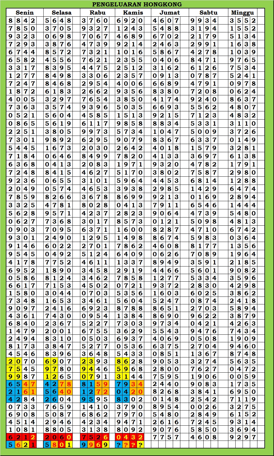 | TABEL DATA HKG VERSI 6D TAHUN 2010 HINGGA SEKARANG |