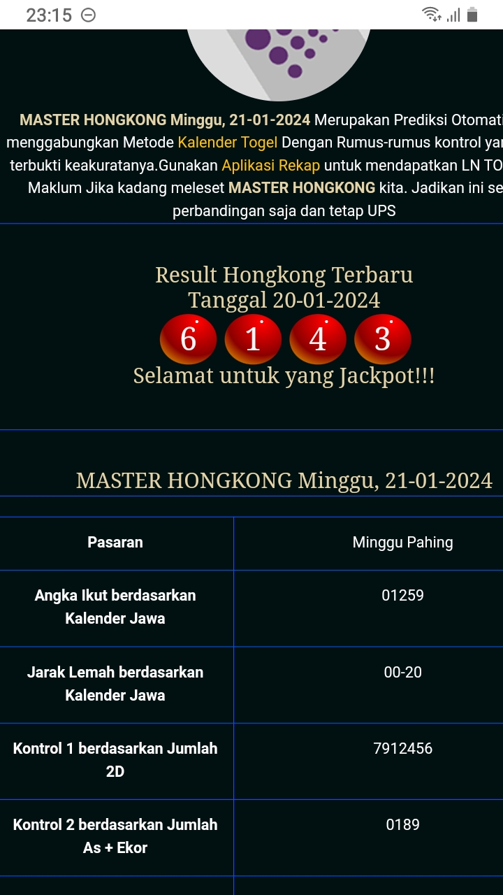 MASTER HONGKONG Rabu, 18-02-2026 Merupakan Prediksi Otomatis yang menggabungkan Metode Kalender Togel Dengan Rumus-rumus kontrol yang sudah terbukti keakuratanya.Gunakan Aplikasi Rekap untuk mendapatkan LN TOP. Harap Maklum Jika kadang meleset MASTER HONGKONG kita. Jadikan ini sebagai perbandingan saja dan tetap UPS