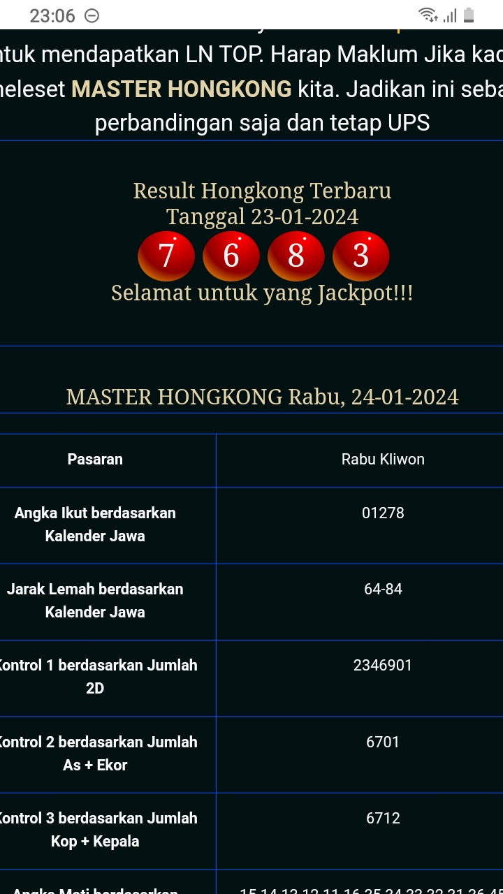 MASTER HONGKONG Rabu, 18-02-2026 Merupakan Prediksi Otomatis yang menggabungkan Metode Kalender Togel Dengan Rumus-rumus kontrol yang sudah terbukti keakuratanya.Gunakan Aplikasi Rekap untuk mendapatkan LN TOP. Harap Maklum Jika kadang meleset MASTER HONGKONG kita. Jadikan ini sebagai perbandingan saja dan tetap UPS