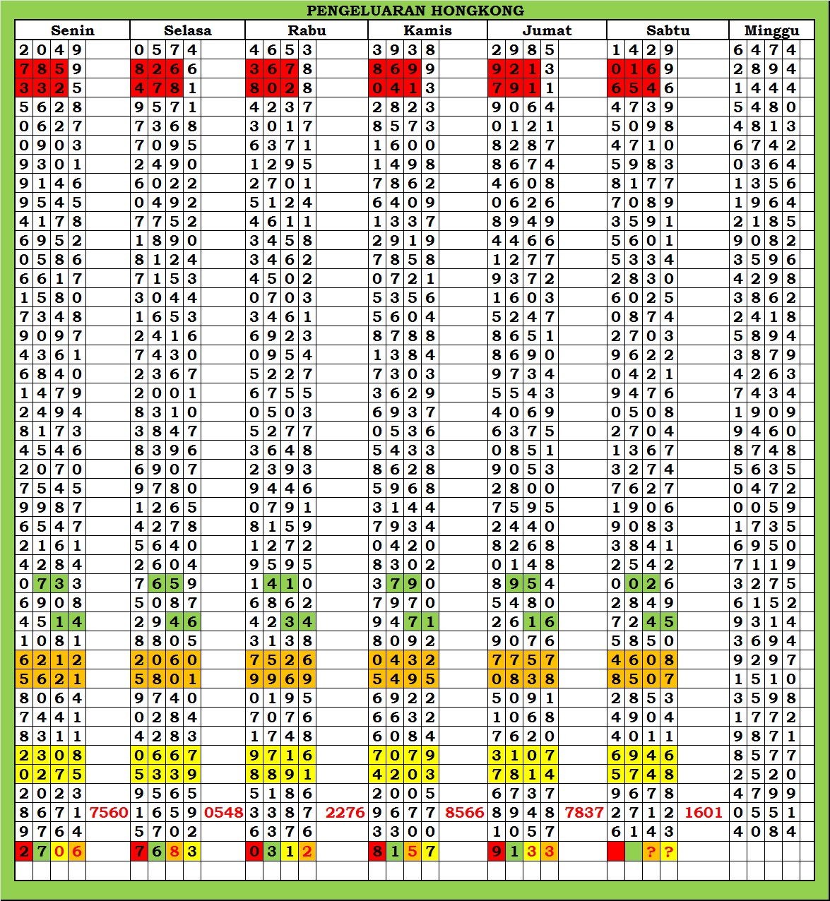 | TABEL DATA HKG VERSI 6D TAHUN 2010 HINGGA SEKARANG |