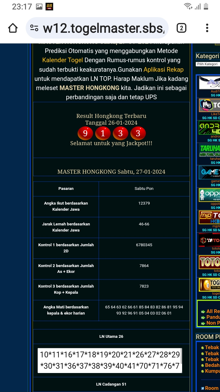 MASTER HONGKONG Rabu, 18-02-2026 Merupakan Prediksi Otomatis yang menggabungkan Metode Kalender Togel Dengan Rumus-rumus kontrol yang sudah terbukti keakuratanya.Gunakan Aplikasi Rekap untuk mendapatkan LN TOP. Harap Maklum Jika kadang meleset MASTER HONGKONG kita. Jadikan ini sebagai perbandingan saja dan tetap UPS