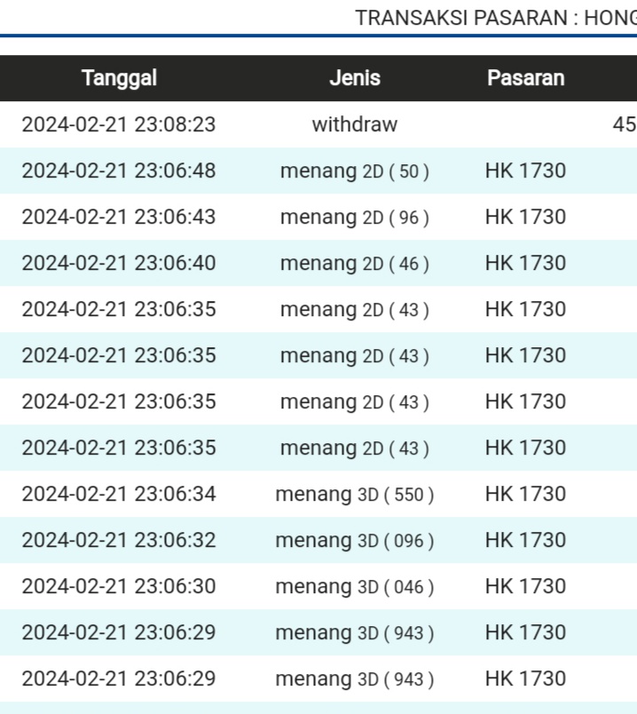| TABEL DATA HK 6D VERSI HARIAN |