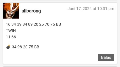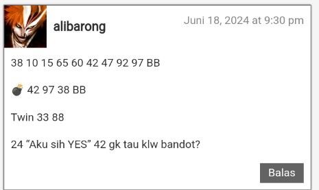 semua postingan komentar SARA, politik, saling menghujat serta saling merendahkan antara prediktor satu dengan yang lainnya jika kami lagi OL mohon maaf langsung kami hapus dan jika telah diperingatkan masih mengulang kami lock datanya