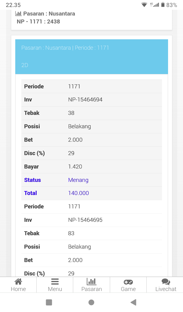 semua postingan komentar SARA, politik, saling menghujat serta saling merendahkan antara prediktor satu dengan yang lainnya jika kami lagi OL mohon maaf langsung kami hapus dan jika telah diperingatkan masih mengulang kami lock datanya