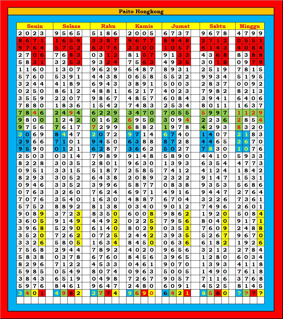 MASTER HONGKONG Minggu, 15-02-2026 Merupakan Prediksi Otomatis yang menggabungkan Metode Kalender Togel Dengan Rumus-rumus kontrol yang sudah terbukti keakuratanya.Gunakan Aplikasi Rekap untuk mendapatkan LN TOP. Harap Maklum Jika kadang meleset MASTER HONGKONG kita. Jadikan ini sebagai perbandingan saja dan tetap UPS