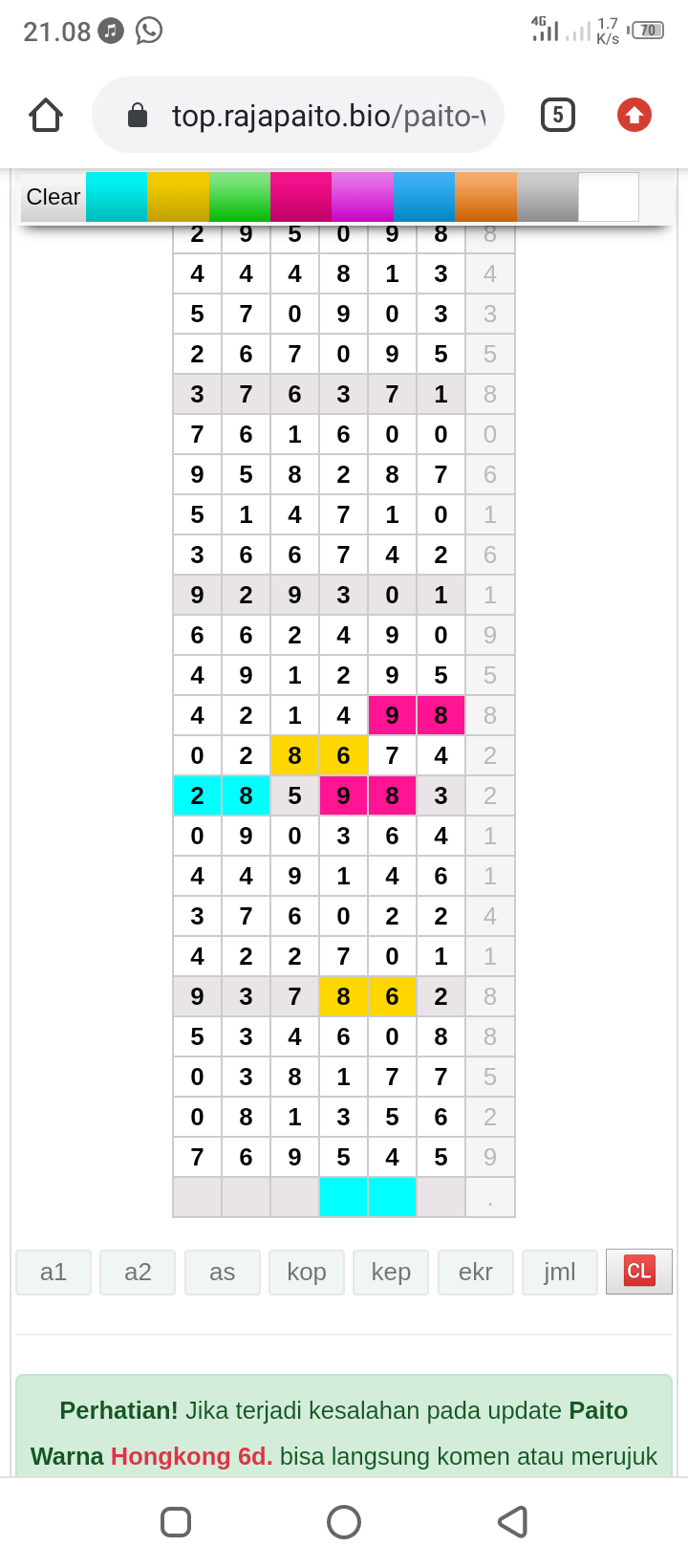 | PAITO WARNA HONGKONG HARIAN 6D |