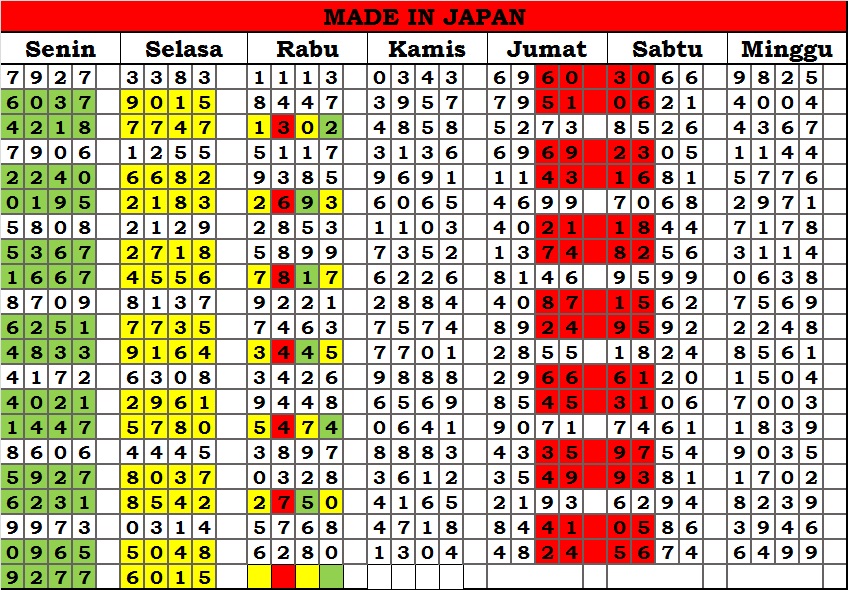 MASTER JAPAN Jumat, 13-02-2026 Merupakan Prediksi Otomatis yang menggabungkan Metode Kalender Togel Dengan Rumus-rumus kontrol yang sudah terbukti keakuratanya.Gunakan Aplikasi Rekap untuk mendapatkan LN TOP. Harap Maklum Jika kadang meleset MASTER JAPAN kita. Jadikan ini sebagai perbandingan saja dan tetap UPS