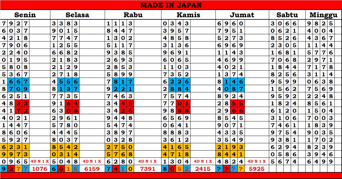 Dengan Paito Ndeso untuk Japan…susunan angka belum bisa ditentukan posisi Kep/Ekor..masih saling berantem tentukan dengan pengaturan di BB…