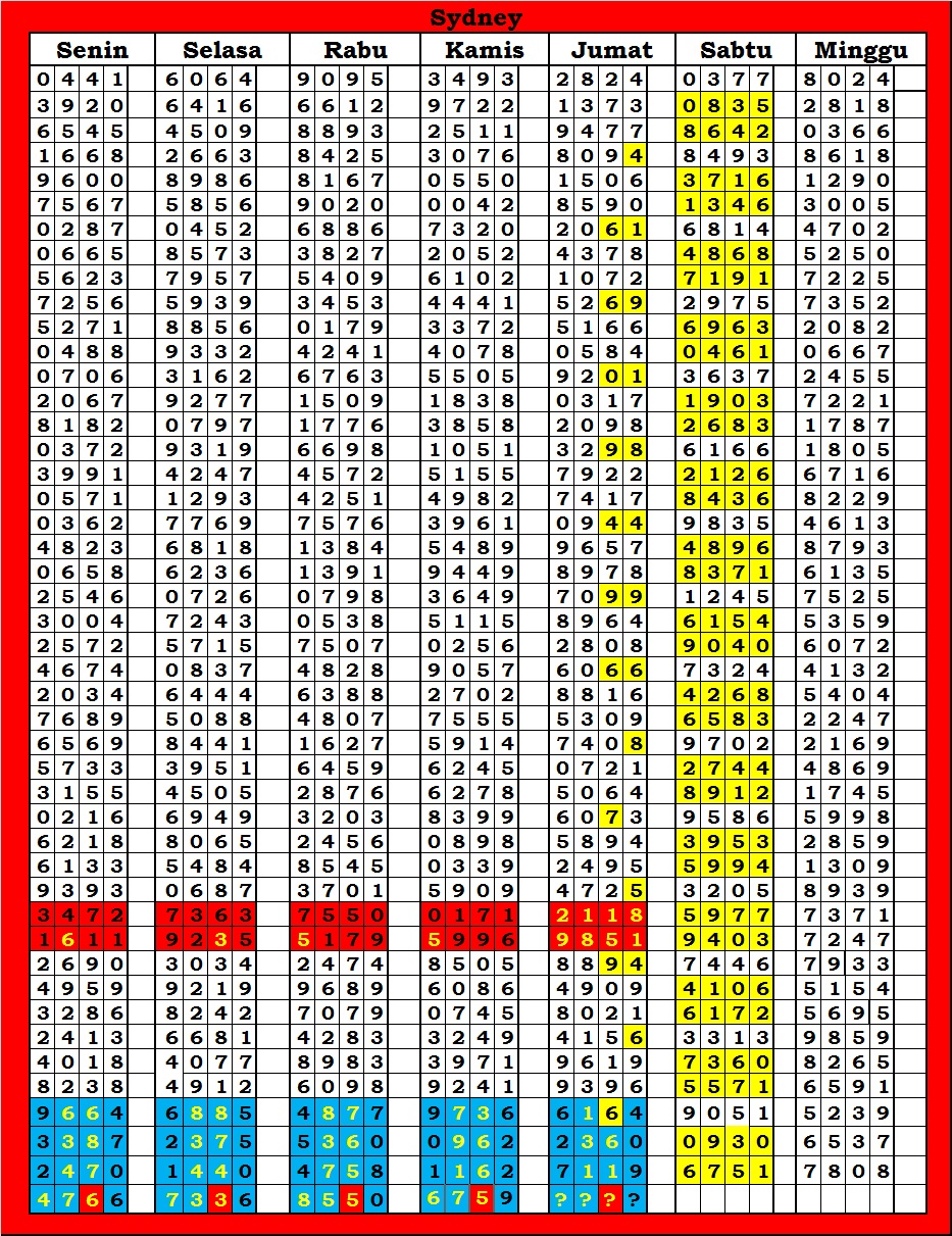 | TABEL DATA SYDNEY 6D VERSI HARIAN |