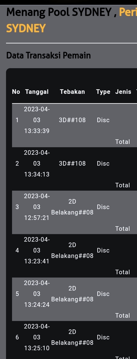| TABEL DATA SYDNEY 6D VERSI HARIAN |