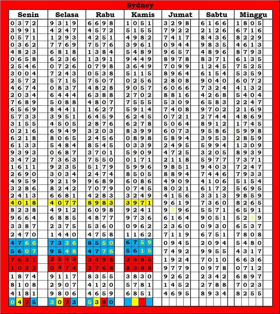| TABEL DATA SYDNEY 6D VERSI HARIAN |
