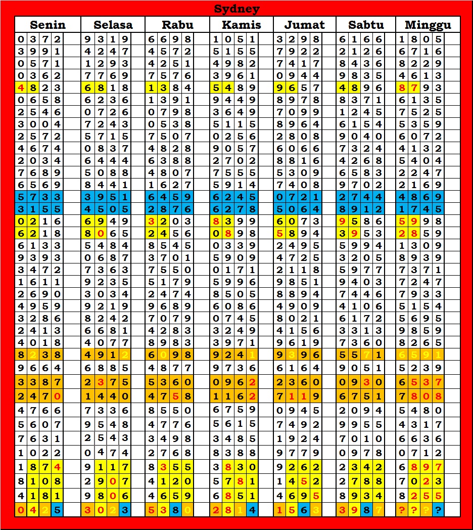 | TABEL DATA SYDNEY 6D VERSI HARIAN |