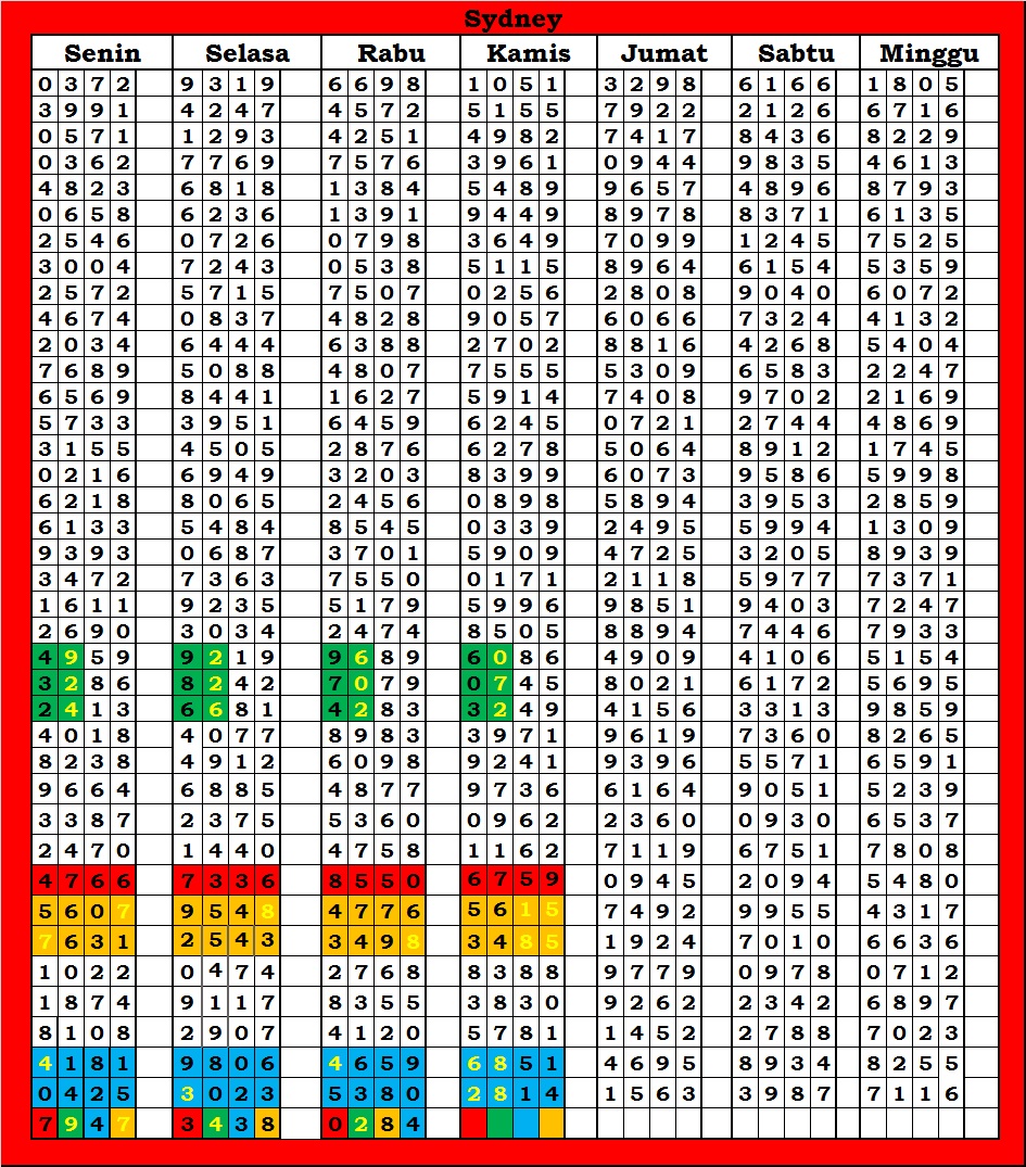 | TABEL DATA SYDNEY 6D VERSI HARIAN |