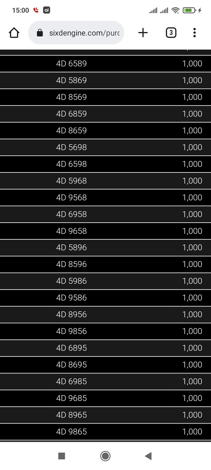 2D (08-72) 3D (081-362) 4D (3901-4752).