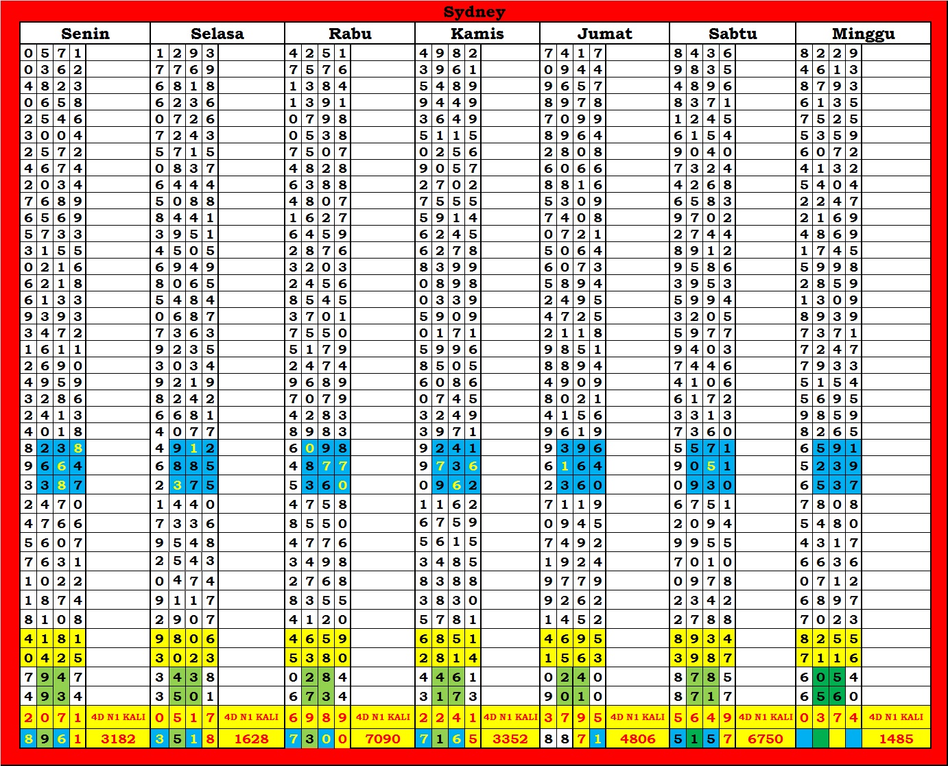 MASTER SYDNEY Sabtu, 21-02-2026 Merupakan Prediksi Otomatis yang menggabungkan Metode Kalender Togel Dengan Rumus-rumus kontrol yang sudah terbukti keakuratanya.Gunakan Aplikasi Rekap untuk mendapatkan LN TOP. Harap Maklum Jika kadang meleset MASTER SYDNEY kita. Jadikan ini sebagai perbandingan saja dan tetap UPS