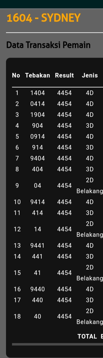 | TABEL DATA SYDNEY 6D VERSI HARIAN |
