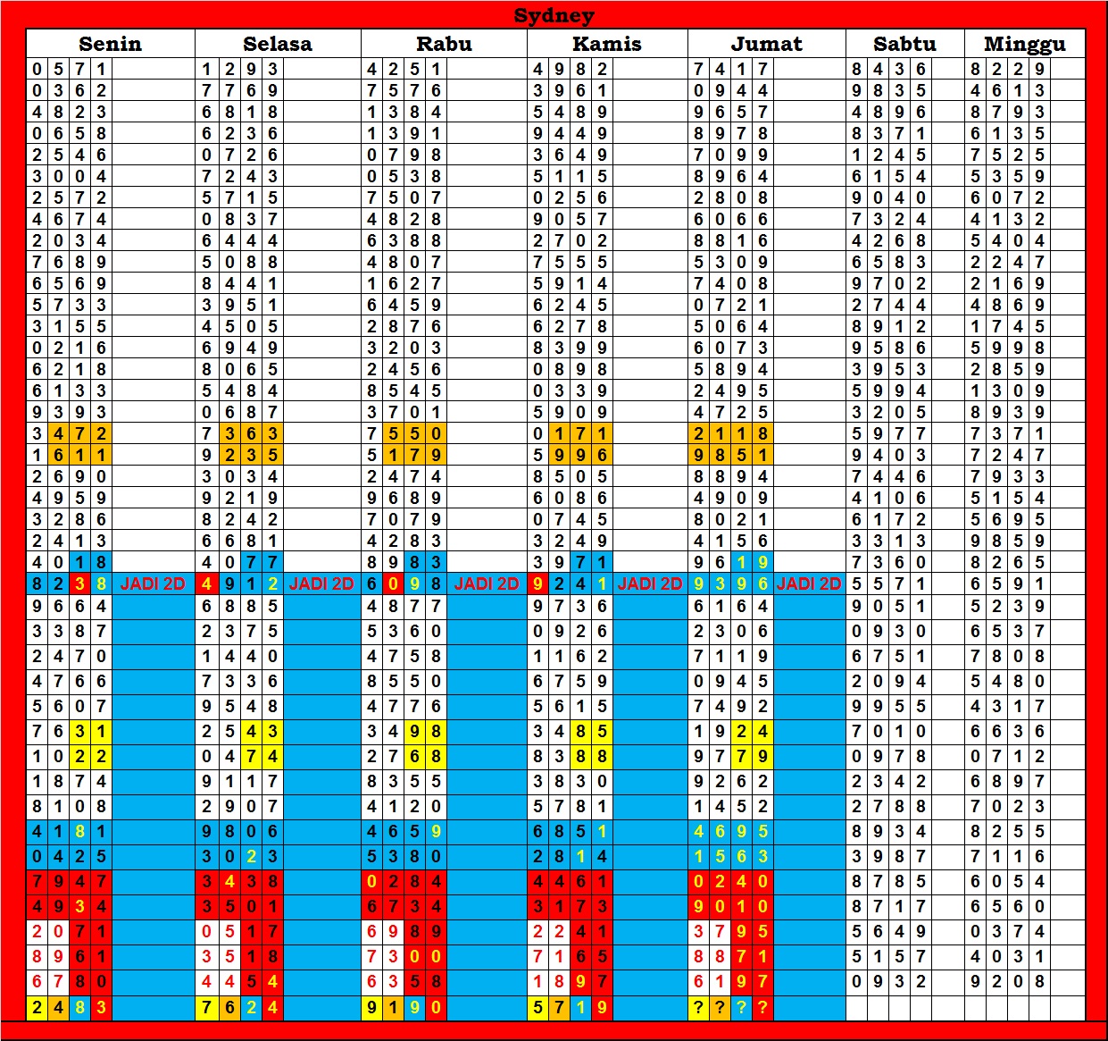 | TABEL DATA SYDNEY 6D VERSI HARIAN |