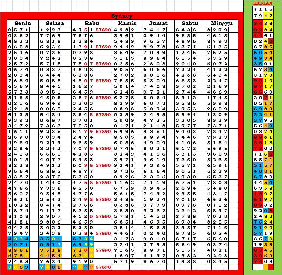 | TABEL DATA SYDNEY 6D VERSI HARIAN |