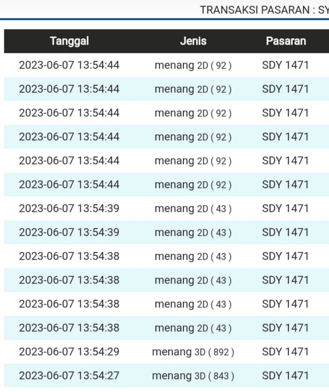 | TABEL DATA SYDNEY 6D VERSI HARIAN |
