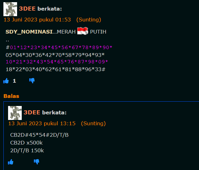 semua postingan komentar SARA, politik, saling menghujat serta saling merendahkan antara prediktor satu dengan yang lainnya jika kami lagi OL mohon maaf langsung kami hapus dan jika telah diperingatkan masih mengulang kami lock datanya