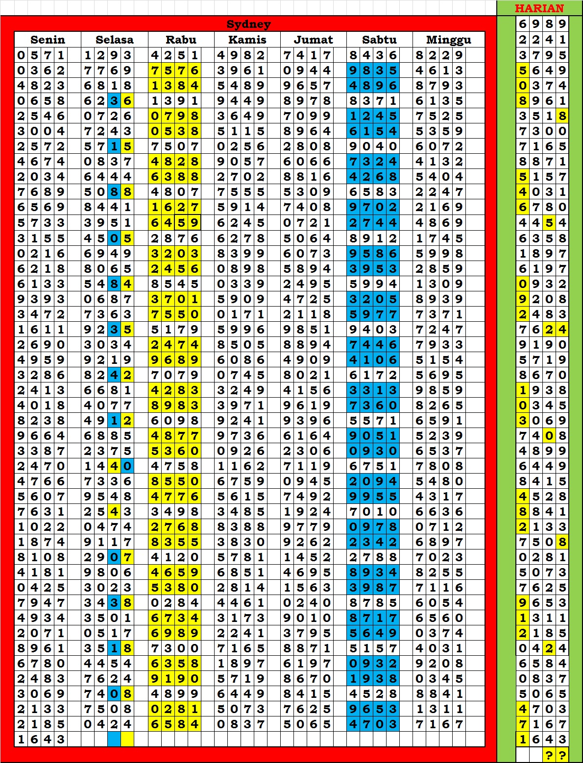 | TABEL DATA SYDNEY 6D VERSI HARIAN |