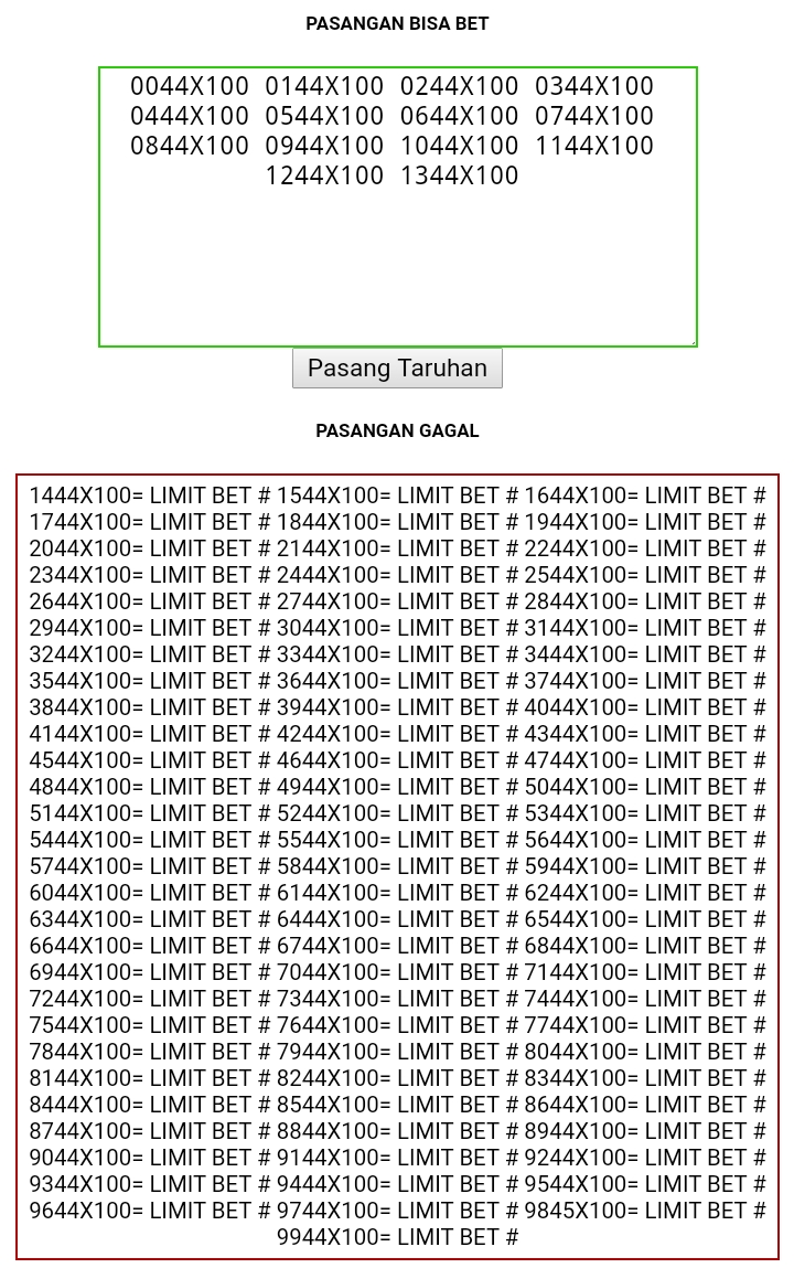 Angka Mati berdasarkan kepala & ekor harian13 14 15 16 19 53 54 55 56 59 63 64 65 66 69 73 74 75 76 79 93 94 95 96 99