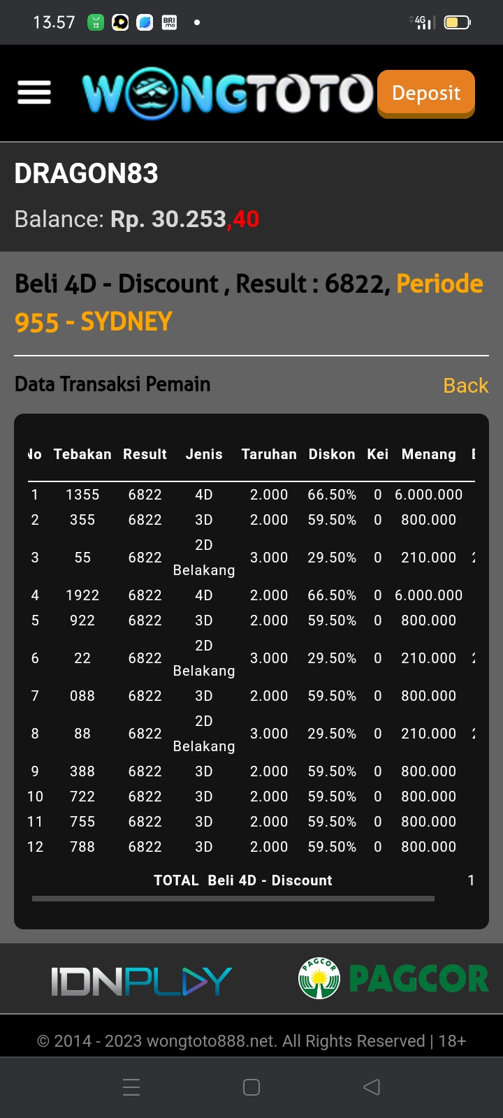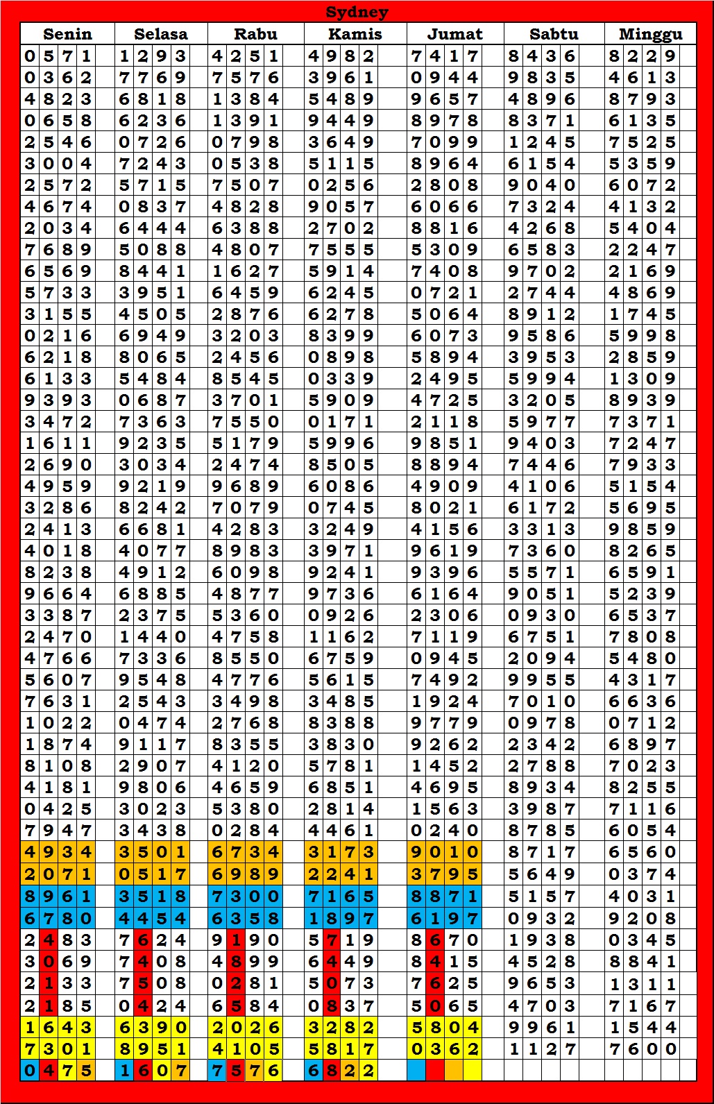 | TABEL DATA SYDNEY 6D VERSI HARIAN |