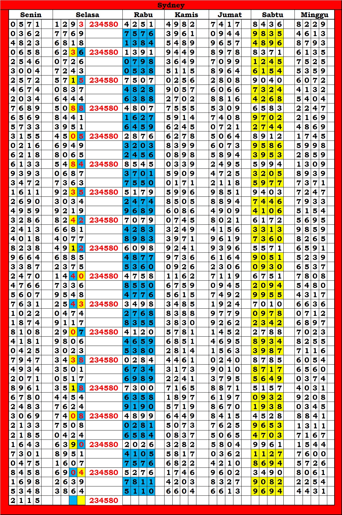 | TABEL DATA SYDNEY 6D VERSI HARIAN |