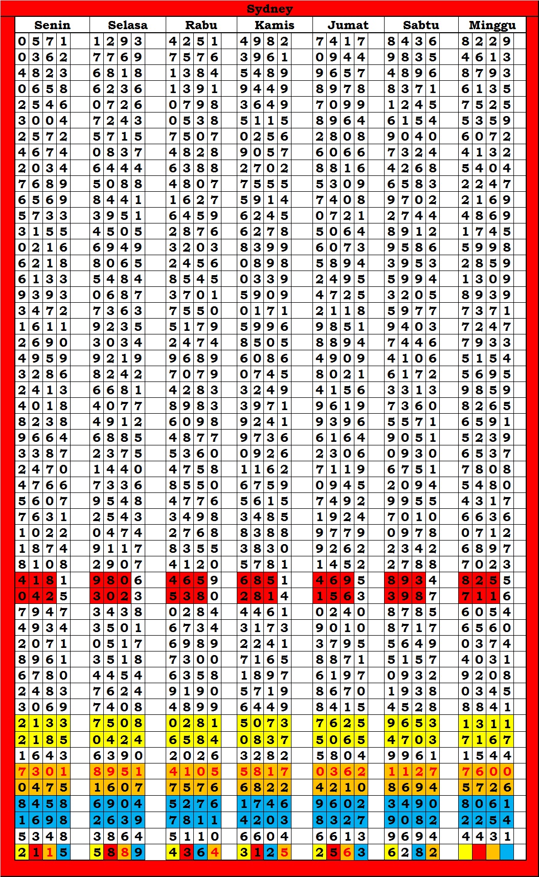| TABEL DATA SYDNEY 6D VERSI HARIAN |