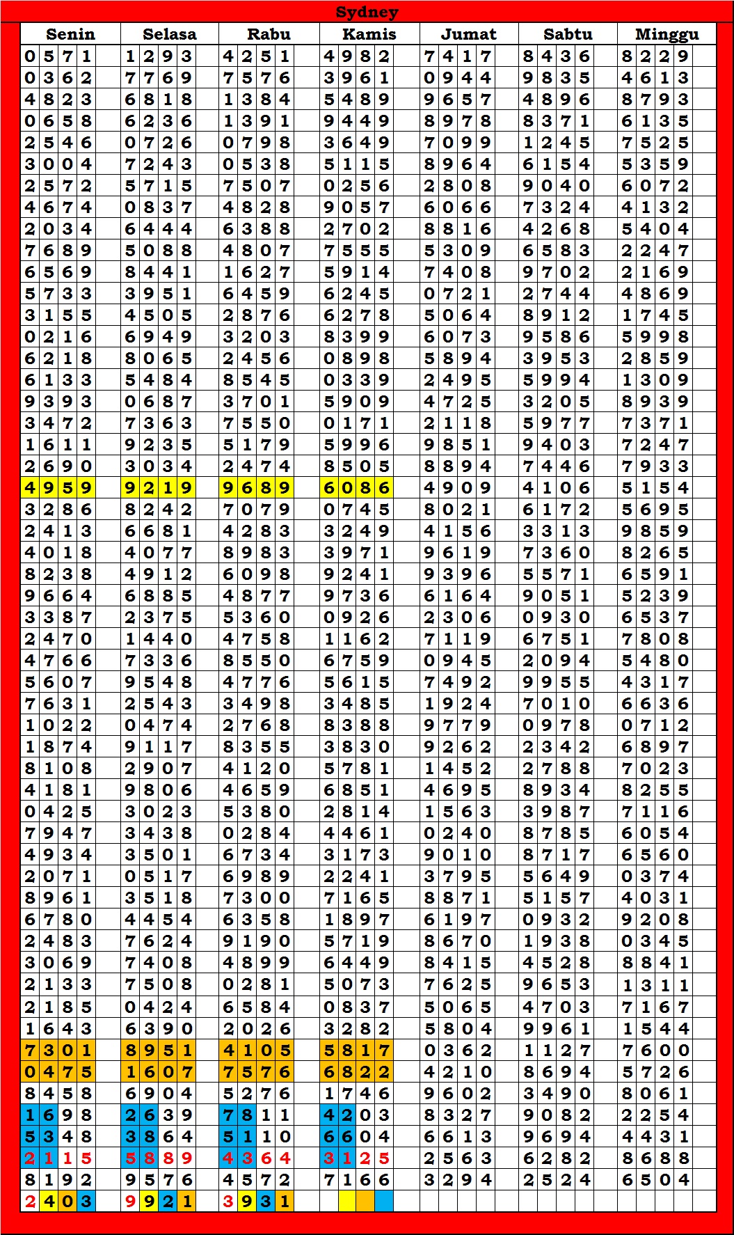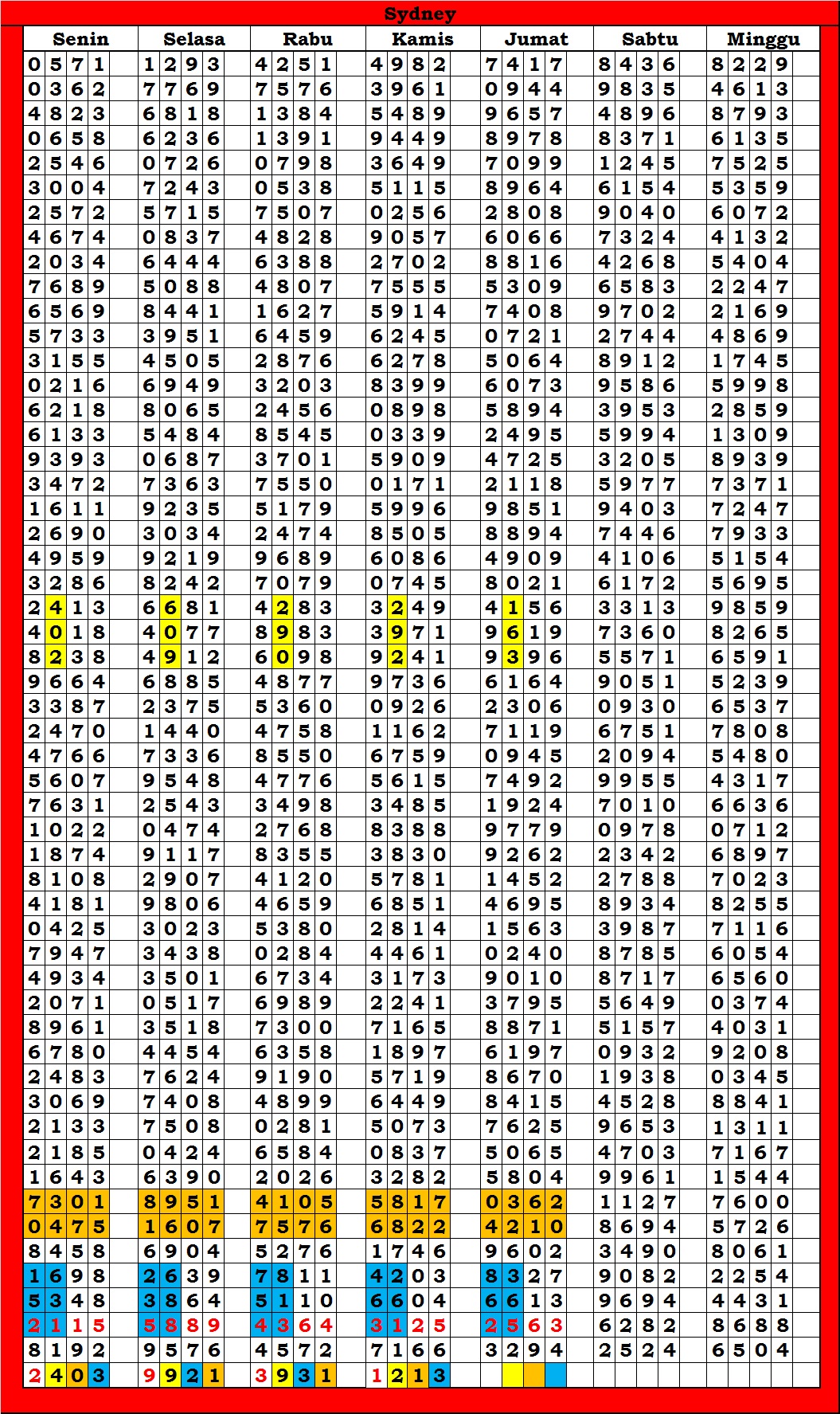| TABEL DATA SYDNEY 6D VERSI HARIAN |