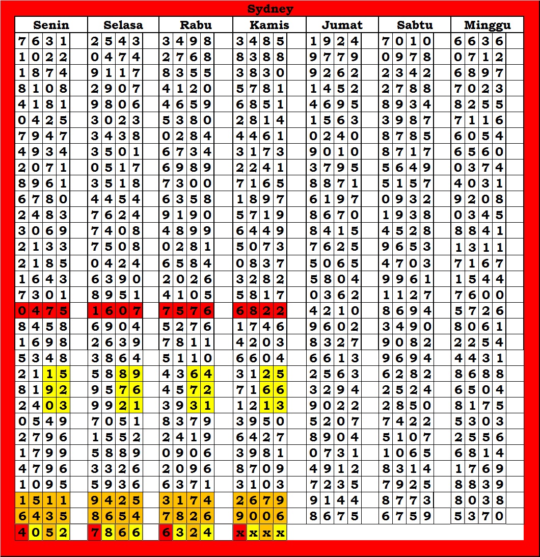 | TABEL DATA SYDNEY 6D VERSI HARIAN |