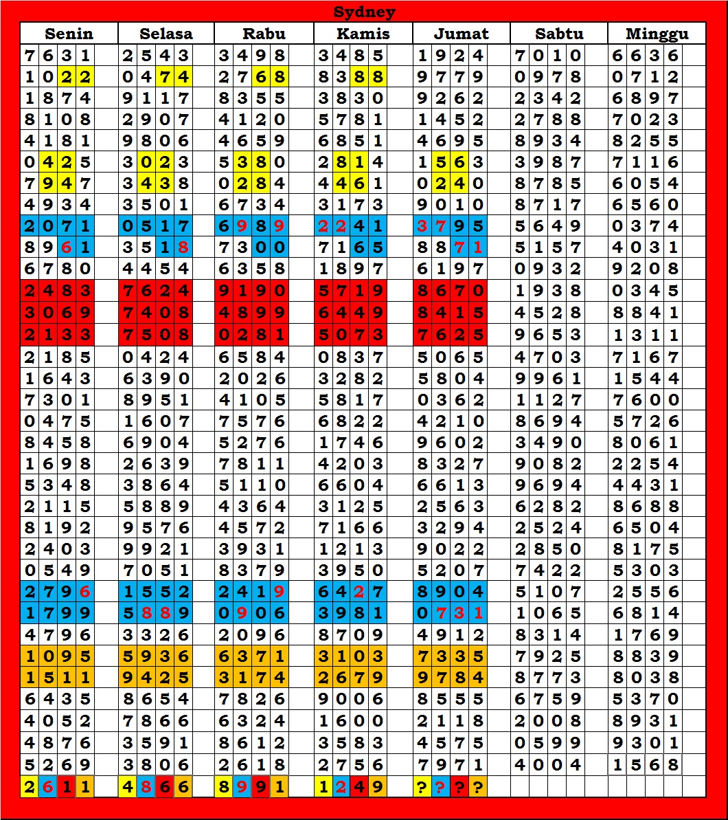 | TABEL DATA SYDNEY 6D VERSI HARIAN |