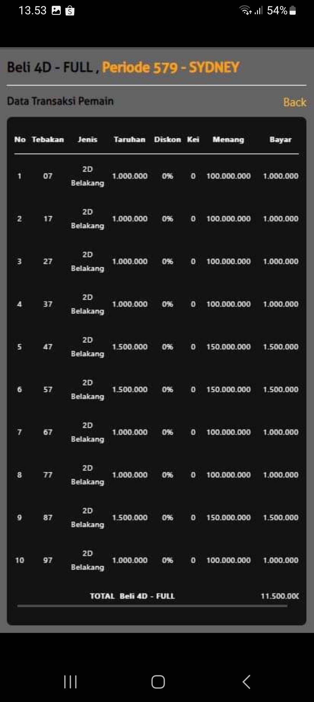 | TABEL DATA SYDNEY 6D VERSI HARIAN |