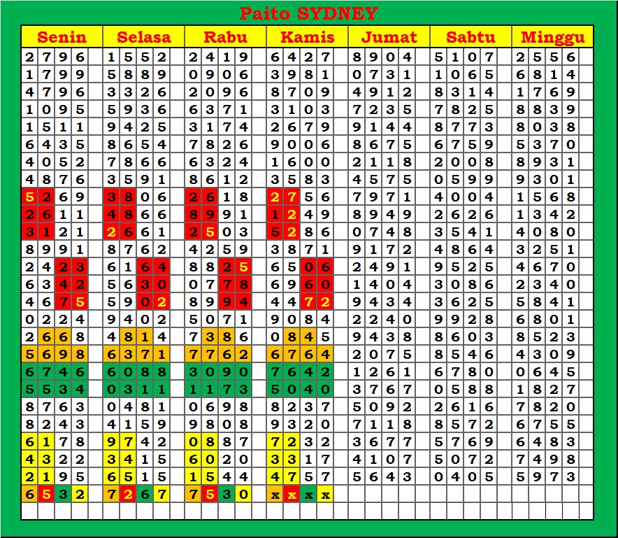 | PAITO WARNA SYDNEY 4D HARIAN |