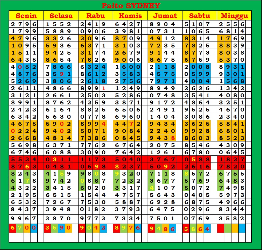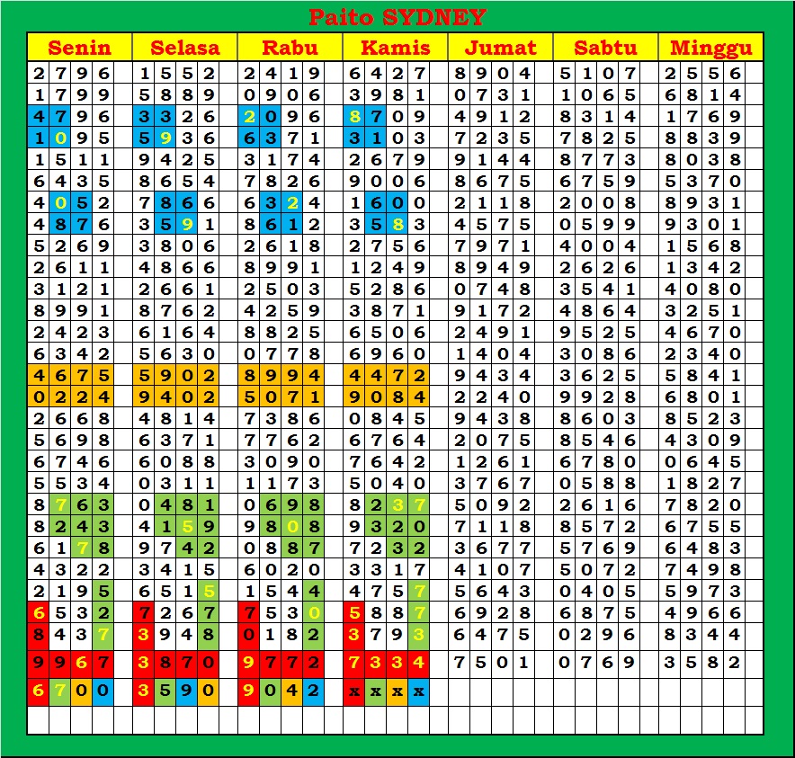 | PAITO WARNA SYDNEY 4D HARIAN |
