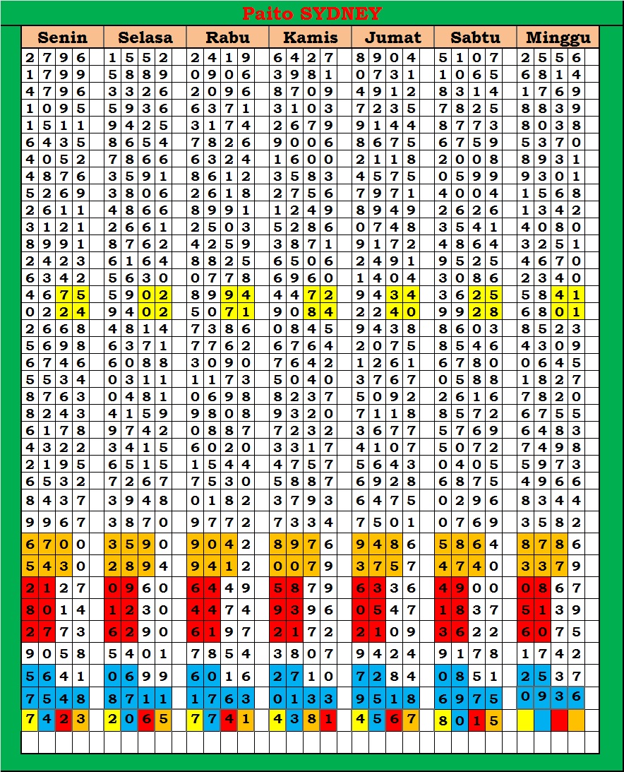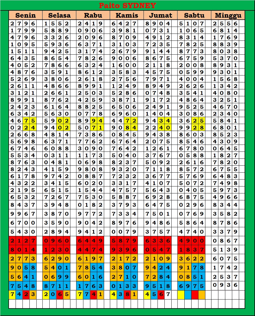 | PAITO WARNA SYDNEY 4D HARIAN |