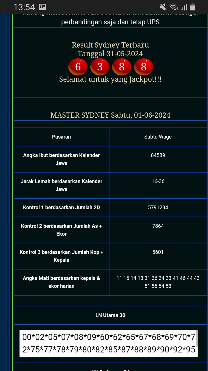 MASTER SYDNEY Minggu, 15-02-2026 Merupakan Prediksi Otomatis yang menggabungkan Metode Kalender Togel Dengan Rumus-rumus kontrol yang sudah terbukti keakuratanya.Gunakan Aplikasi Rekap untuk mendapatkan LN TOP. Harap Maklum Jika kadang meleset MASTER SYDNEY kita. Jadikan ini sebagai perbandingan saja dan tetap UPS