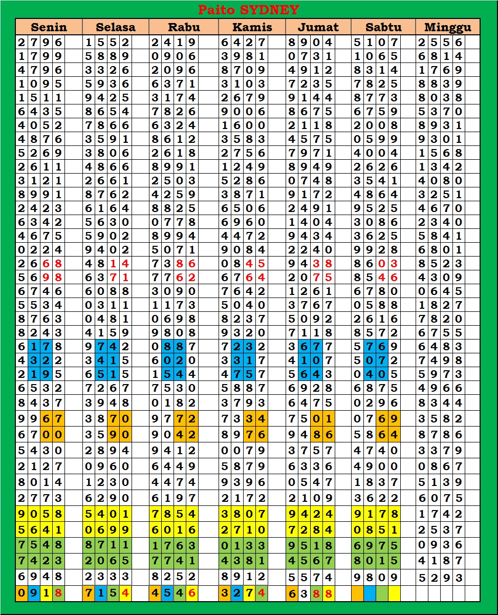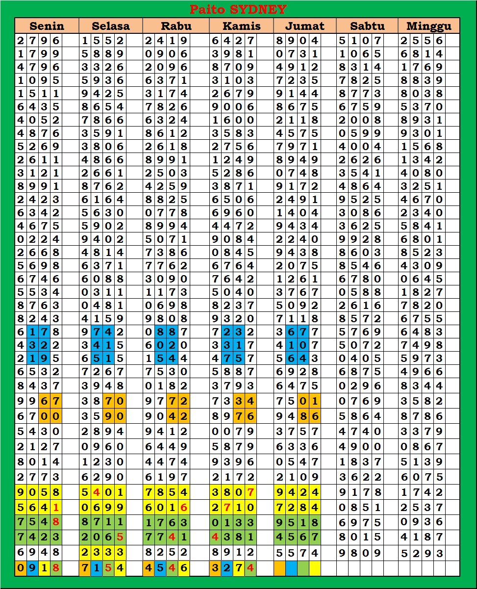 | PAITO WARNA SYDNEY 4D HARIAN |