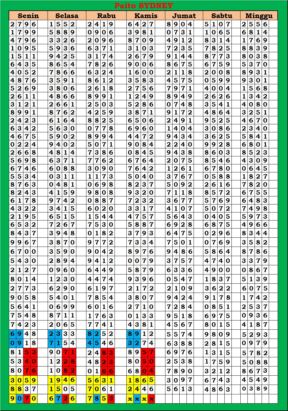 | TABEL DATA SYDNEY 6D VERSI HARIAN |