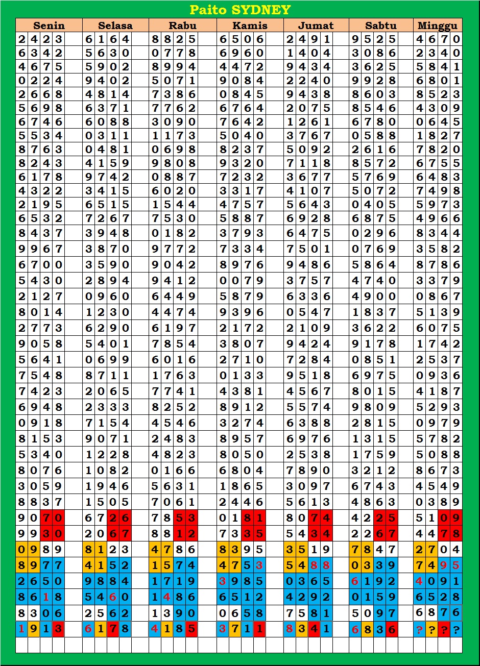 | PAITO WARNA SYDNEY 4D HARIAN |