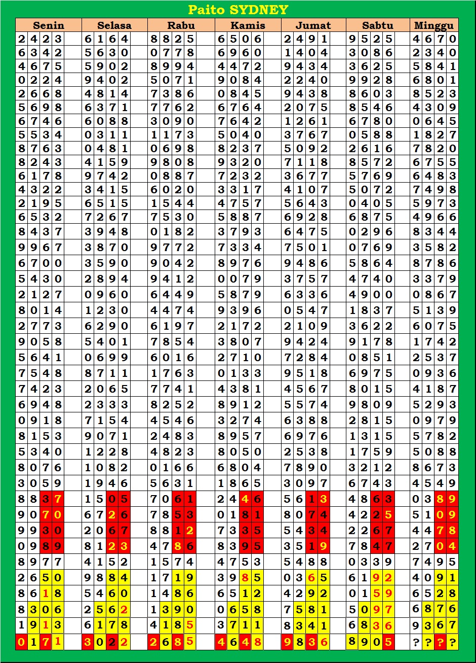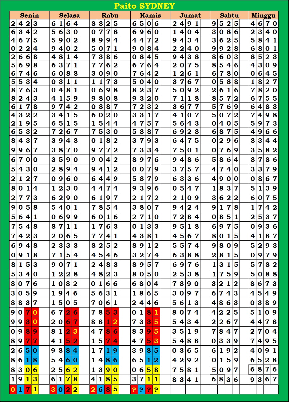 MASTER SYDNEY Sabtu, 14-02-2026 Merupakan Prediksi Otomatis yang menggabungkan Metode Kalender Togel Dengan Rumus-rumus kontrol yang sudah terbukti keakuratanya.Gunakan Aplikasi Rekap untuk mendapatkan LN TOP. Harap Maklum Jika kadang meleset MASTER SYDNEY kita. Jadikan ini sebagai perbandingan saja dan tetap UPS