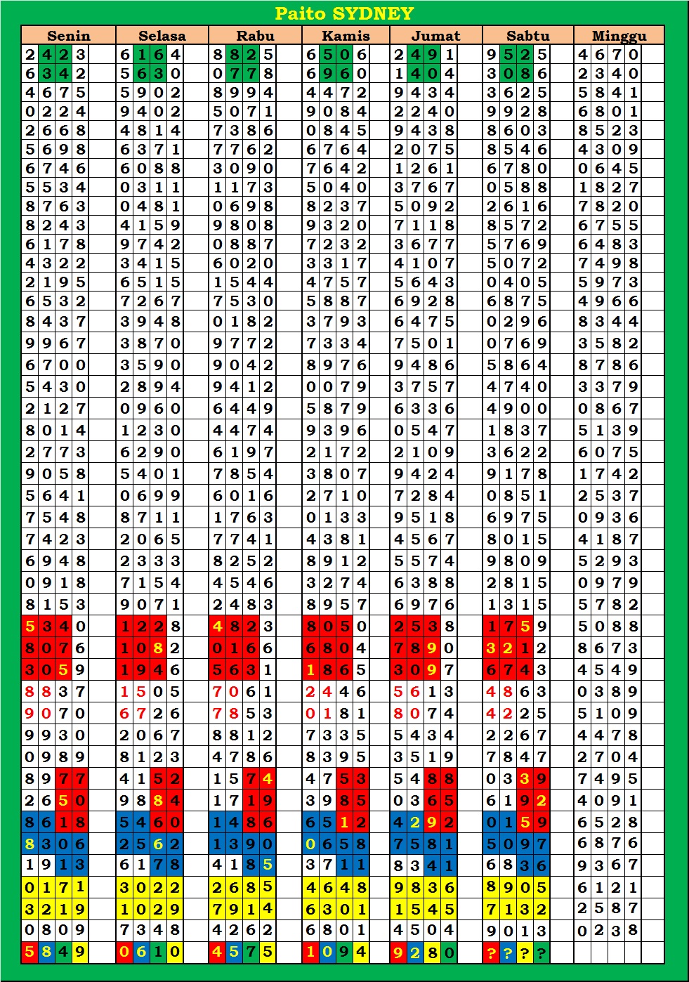 | TABEL DATA SYDNEY 6D VERSI HARIAN |